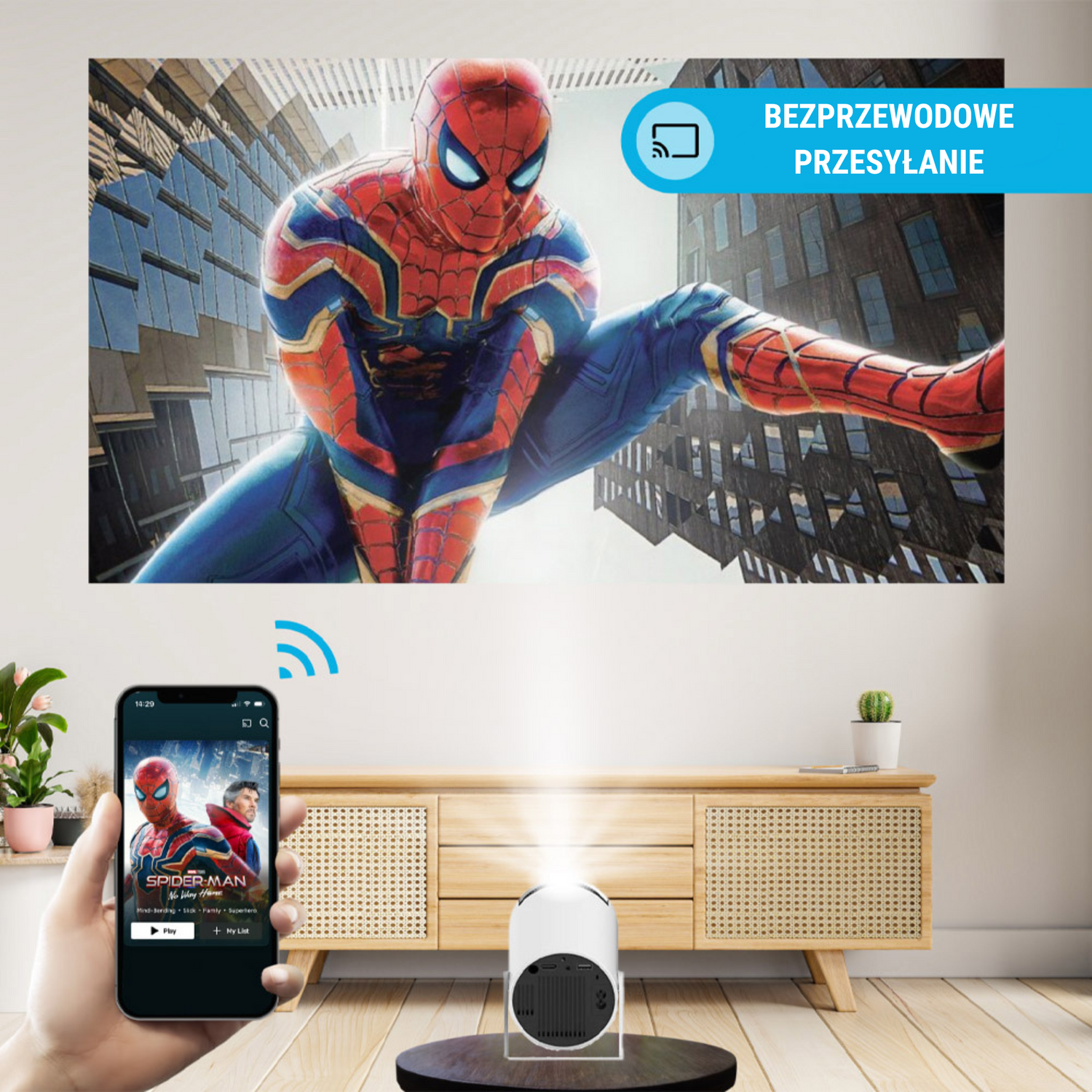 Dzięki dwupasmowemu WiFi 6 (2.4G/5G) oraz portom HDMI, USB i Bluetooth, ProjektorLite™ jest kompatybilny z smartfonami, tabletami, komputerami i konsolami do gier. Oglądaj filmy w streamingu, udostępniaj ekran bezprzewodowo i bezproblemowo podłączaj wszystkie swoje urządzenia.